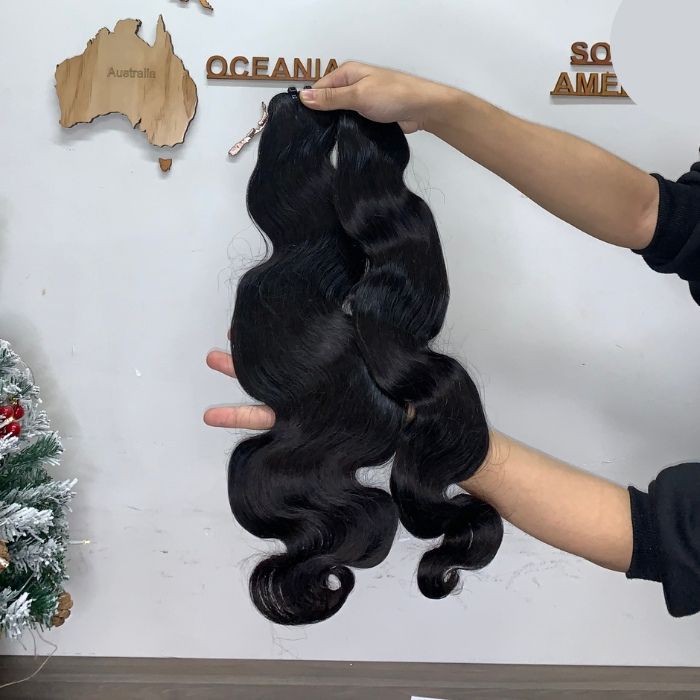 Body Wavy Raw Human Hair Bundles from VietHair Factory, featuring a soft, bouncy wave pattern, are the perfect choice for those who want fuller, more voluminous hair with an effortlessly glamorous look.